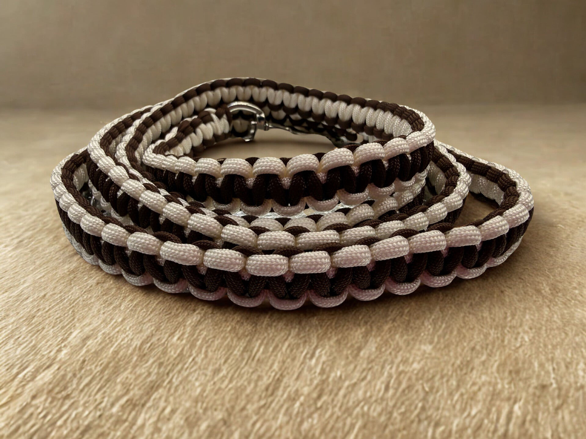 Diese hochwertige Leine überzeugt durch sorgfältige Handarbeit und ein besonders stabiles Flechtmuster. Sie liegt angenehm in der Hand, bietet einen sicheren Griff und eignet sich ideal für den täglichen Einsatz ebenso wie für längere Spaziergänge oder Outdoor-Aktivitäten.